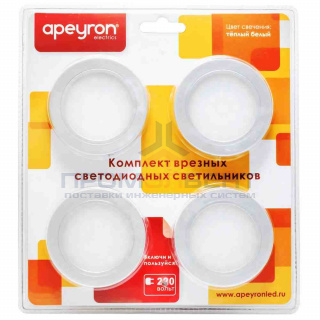 12-03 Комплект светодиодных светильников круглых врезных, 12 В, 2 Вт х 4 шт, smd 3528, ТБ